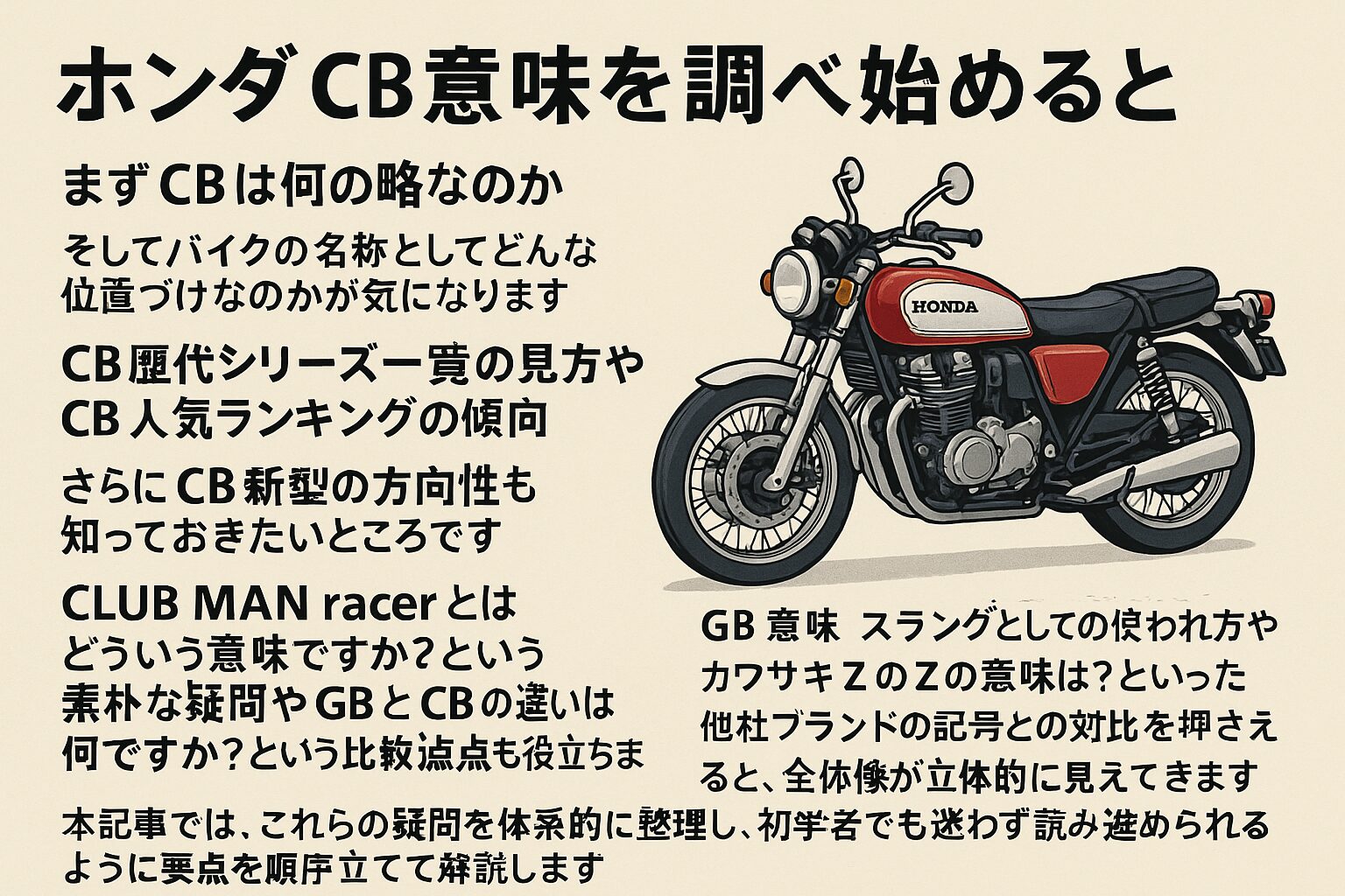 ホンダ CBの意味を完全解説:由来・歴史・新型まで徹底ガイド 公開日:2025年10月13日 バイク全般 この記事にはプロモーションが含まれています。 ホンダ CB 意味を調べ始めると、まずCBは何の略なのか、そしてバイクの名称としてどんな位置づけなのかが気になります。あわせて、CB歴代シリーズ一覧の見方やCB人気ランキング […] 続きを読む