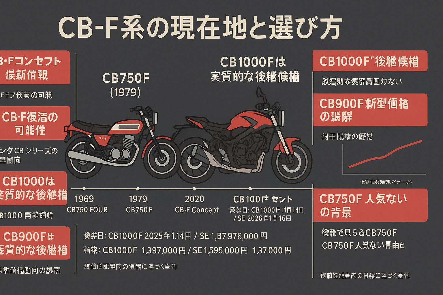 ホンダ CB750F 新型の真相と後継候補 徹底解説・完全ガイド 公開日:2025年10月13日 バイク全般 この記事にはプロモーションが含まれています。 本記事は、ホンダ CB750F 新型を調べている方が知りたい要点を、最初に全体像から順に整理して解説します。まず、CB-Fコンセプトの最新情報や復活の可能性、そしてホンダCB […] 続きを読む