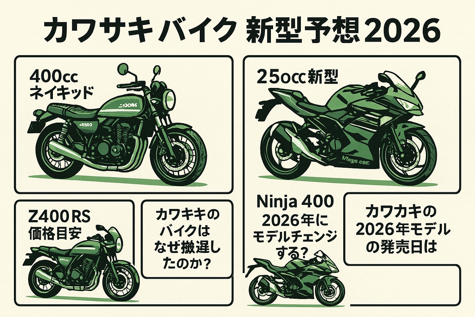 カワサキのバイク 新型予想と2026年最新モデル情報を徹底解説 更新日:2025年10月20日 公開日:2025年10月19日 カワサキ この記事にはプロモーションが含まれています。 カワサキのバイクの新型予想に関心を持つ方に向けて、点在する新型情報や噂を整理し、新型予想2026の全体像をわかりやすく解説します。注目度の高い400ccネイキッドの新型や25 […] 続きを読む