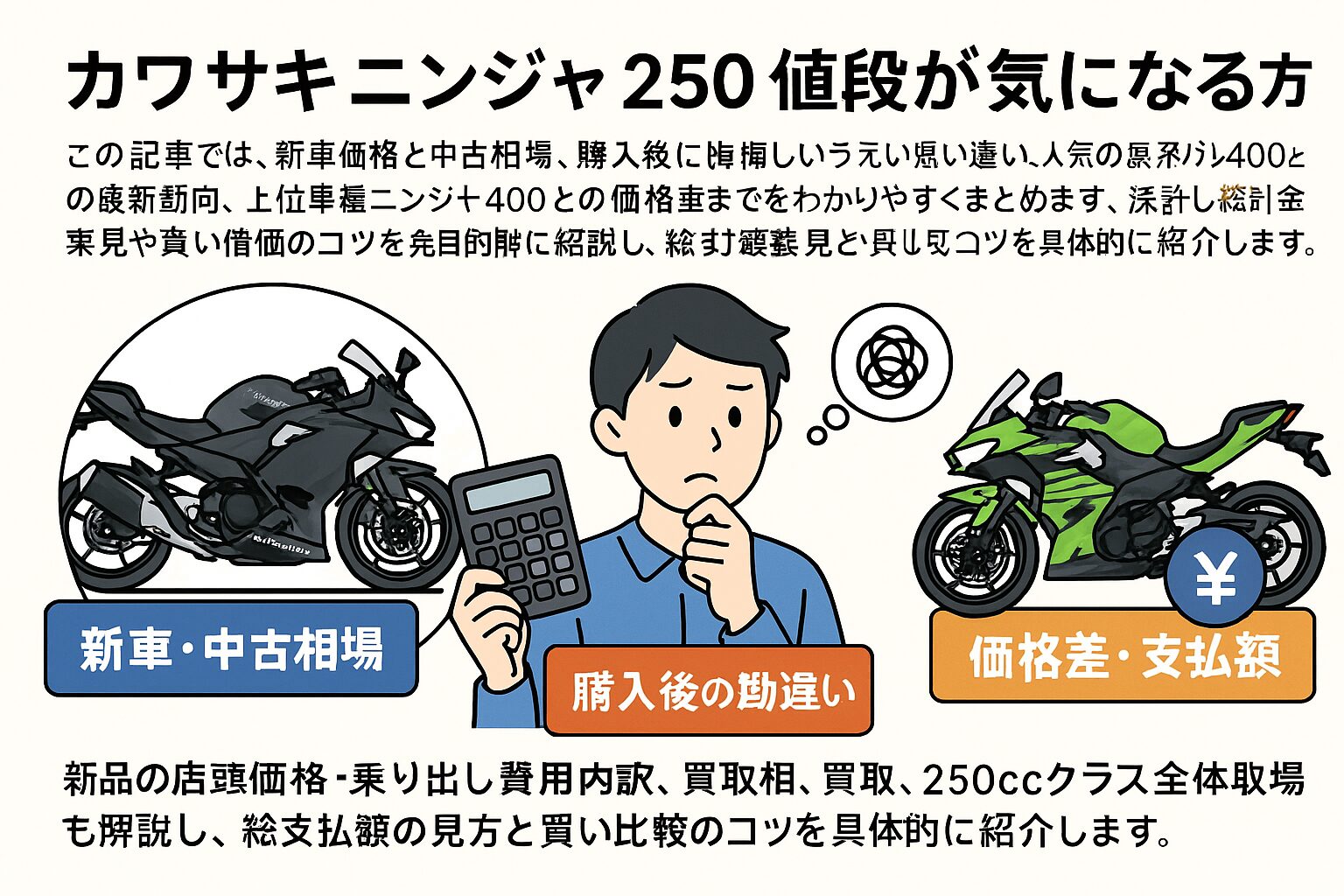 カワサキ ニンジャ 250ccの値段を徹底比較|新車・中古・乗り出し価格まとめ 公開日:2025年10月22日 カワサキ この記事にはプロモーションが含まれています。 カワサキのニンジャ 250cc 値段が気になる方へ。この記事では、新車価格と中古相場、購入後に後悔しやすい思い違いの整理、人気の黒系新車の価格感、2026年モデルの最新動向、 […] 続きを読む