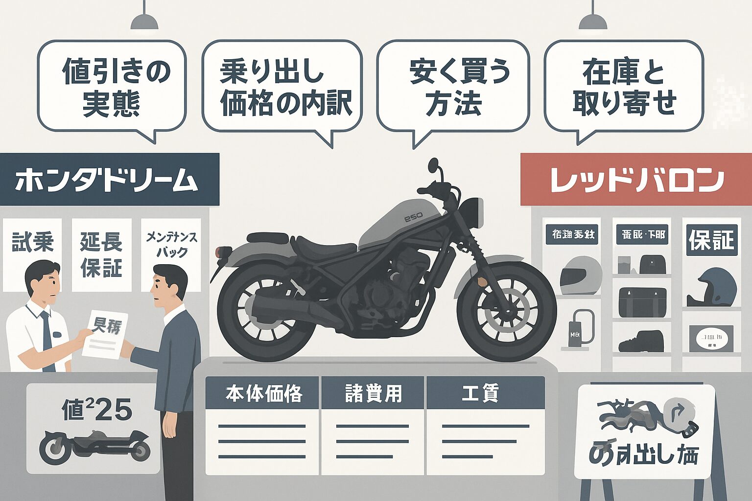 ホンダドリームでレブルの値引き損しない!安く買うための完全ガイド 公開日:2025年10月5日 バイク全般 この記事にはプロモーションが含まれています。 レブル250の購入を検討し、ホンダドリーム レブル 値引きについて知りたい方に向けて、値引きの可否や相場、購入先の比較(ホンダドリームとレッドバロンの違い)、新車の取り寄せや […] 続きを読む