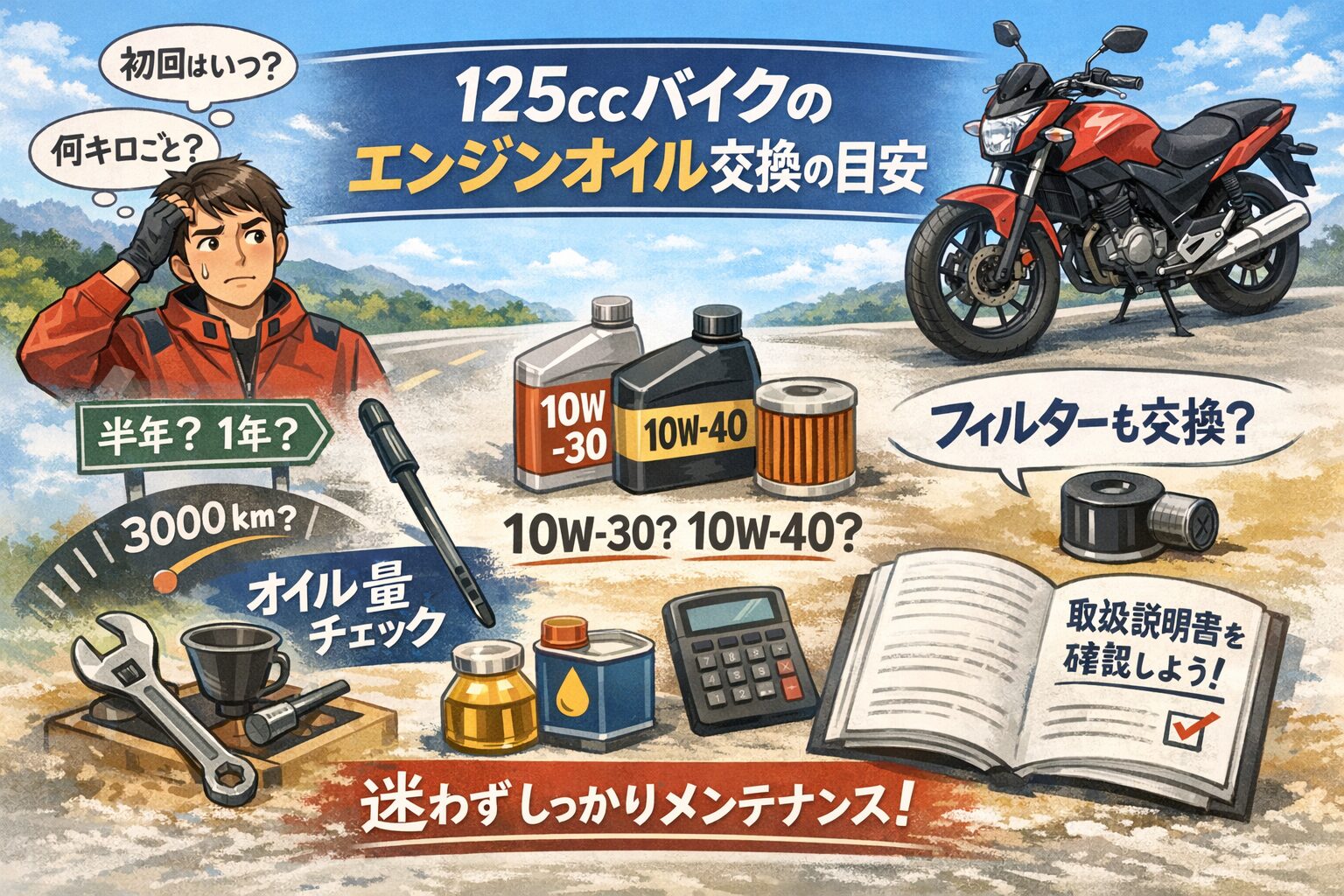 125ccバイクのエンジンオイル交換時期を完全整理した保存版 公開日:2025年12月26日 バイク全般 この記事にはプロモーションが含まれています。 125ccバイクのエンジンオイル交換時期って、調べれば調べるほど「結局いつが正解なの?」ってなりやすいですよね。あなたのそのモヤモヤ、めちゃ分かります。 交換頻度は何キロごと […] 続きを読む