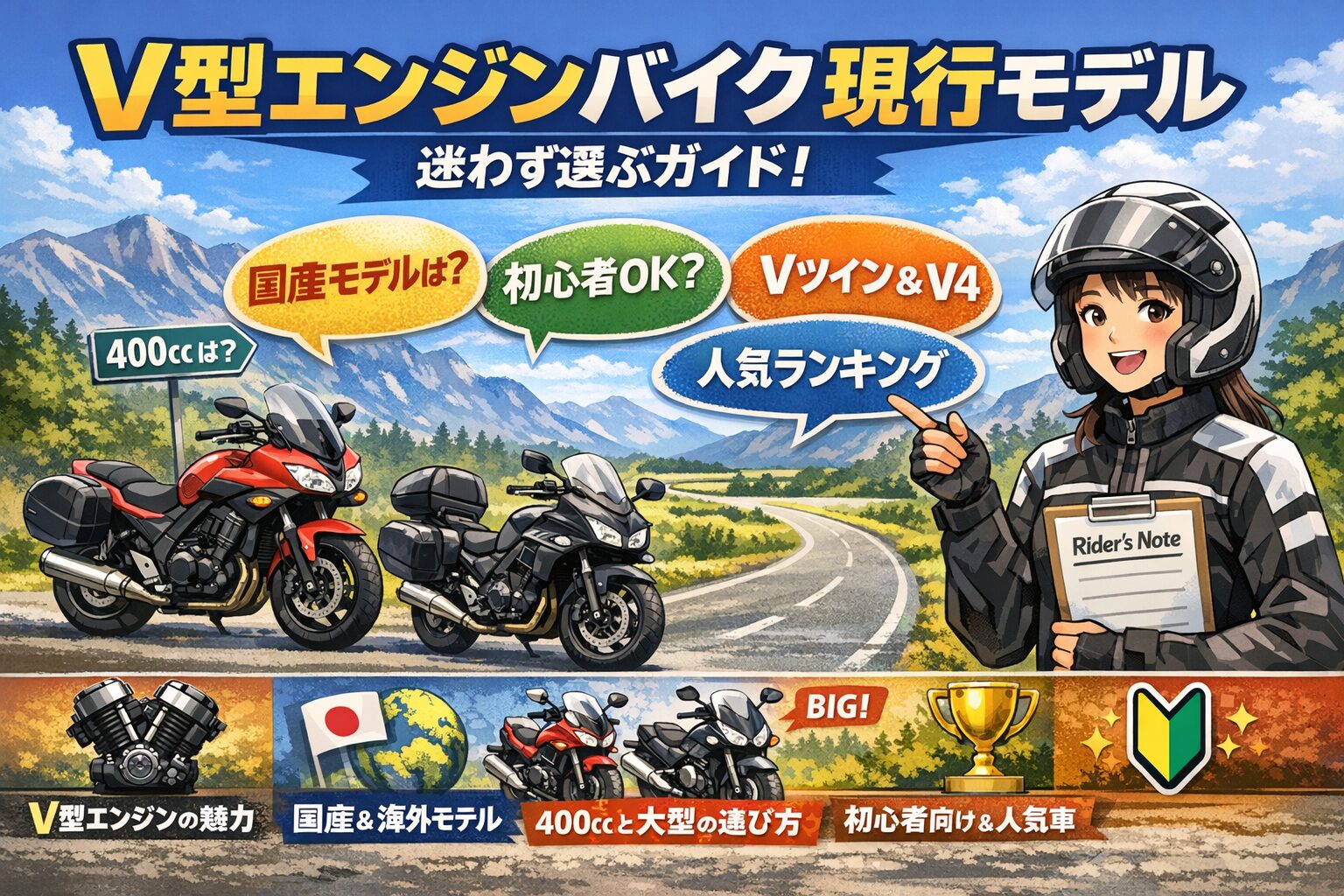 V型 エンジン バイク 現行モデルの国産・輸入モデル徹底比較 公開日:2026年1月7日 バイク全般 この記事にはプロモーションが含まれています。 V型エンジンバイクの現行モデルって、いま何が買えるの?ここ、気になりますよね。 国産はほぼ絶滅と言われつつも、VツインやV4の鼓動感が好きな人にとっては「おすすめはどれ?」「 […] 続きを読む