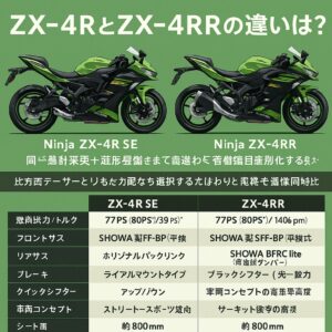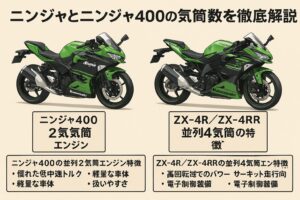 「ニンジャ」という名称だけで判断するのではなく、Ninja 400(2気筒)とZX-4R/ZX-4RR(4気筒)を明確に区別して理解することが、最適なバイク選びにつながります。排気量が同じでも、エンジン構成・車体設計・用途がまったく異なるため、ライダー自身の走行スタイルや環境に応じた選択が必要です。