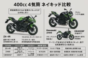 もしツーリングや街乗りを中心に使用したい場合、Z400のような2気筒ネイキッドモデルが実用性・価格・維持費のバランスに優れています。一方で、回転上昇のスムーズさやサウンド面での魅力を最重視するなら、ZX-4Rを選ぶ価値は大いにあります。すなわち、ツーリング主体なら2気筒ネイキッド、走行性能重視なら4気筒スーパースポーツという明確な選び分けが可能です。
