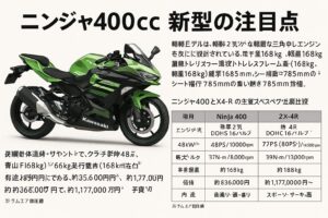ニンジャ400とZX-4Rの主要スペック比較(2026年モデル参考)