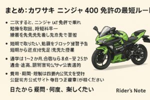 まとめ:カワサキ ニンジャ 400 免許の最短ルート