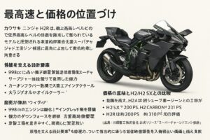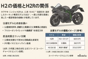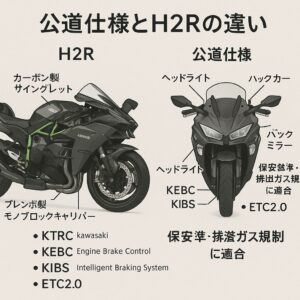 このような仕様の差により、H2Rは単なる上位機種ではなく、まったく別次元の「レーシングプラットフォーム」として位置づけられます。価格差は、単に出力や素材の違いだけでなく、開発・製造コストの膨大さにも反映されています。