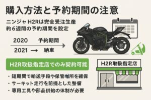 このような販売スケジュールのため、H2Rを検討する際は、情報公開から予約開始までの短期間で資金計画・保管場所・輸送方法・走行予定をすべて整える準備が求められます。特にサーキット利用が前提となるため、トランポやトレーラーを用いた輸送手段、専用ガレージでの保管環境(温度・湿度管理など)を事前に確保しておくことが望ましいです。